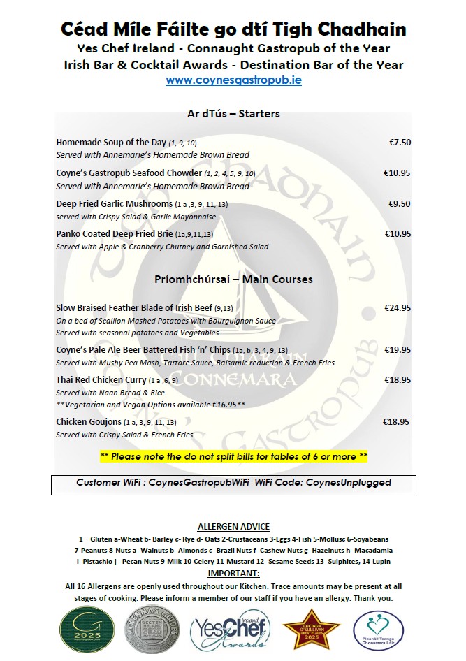 Our menu is subject to change and we also have daily specials. Please contact us for details!