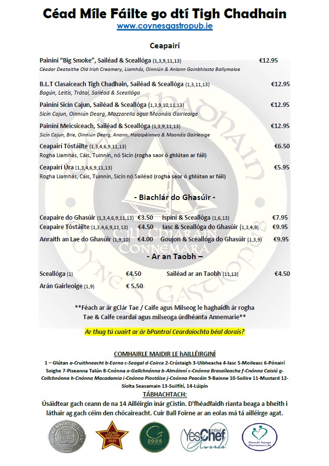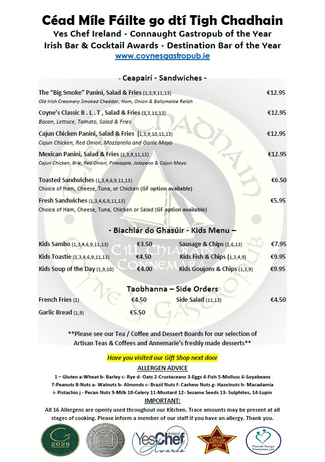 Choice of Ham, Cheese, Tuna or Chicken (GF option available)